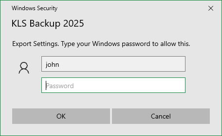 If a password dialog appears, enter your current Windows password to authorize the export process.