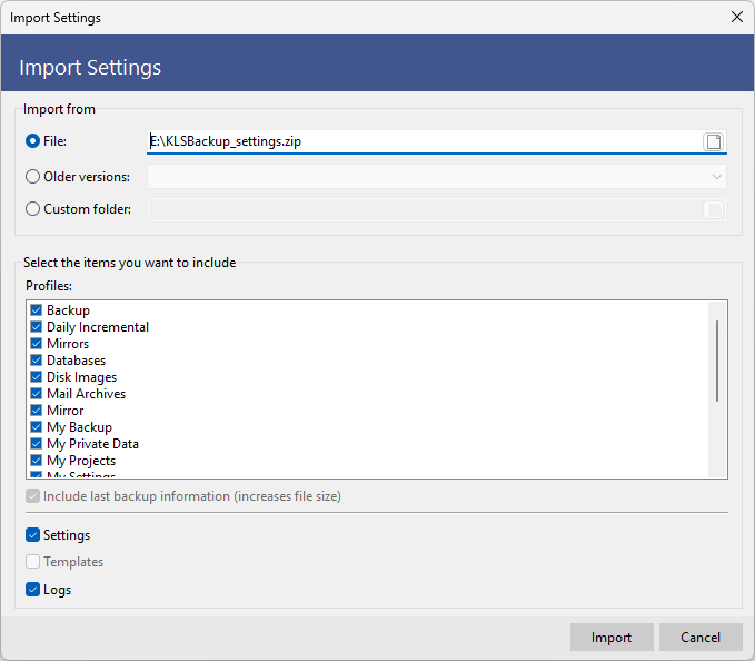 KLS Backup 2025 provides an easy solution to migrate all your existing backup profiles and settings to the new operating system, allowing you to continue protecting your data right where you left off.