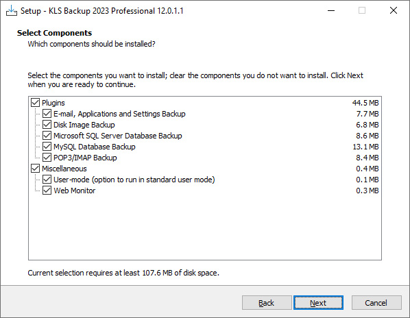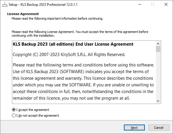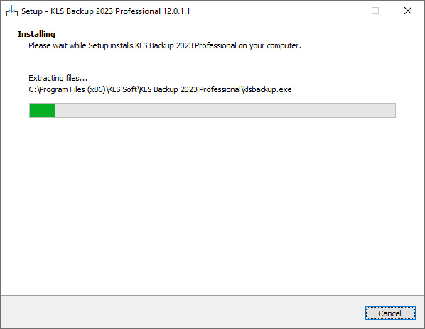 4. Follow the prompts in the installation program. The installer will update you copy of KLS Backup 2023, existing configuration files will be preserved.