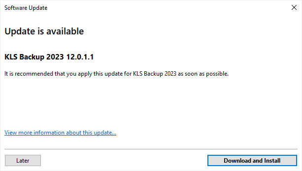 3. The updater will update you copy of KLS Backup 2023, existing configuration files will be preserved.
