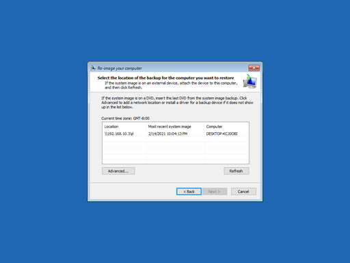 Windows will automatically detect backups on the local drives. You can specify a network location if system image is not listed here.