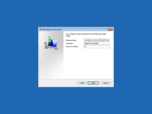 Click Finish to start the system recovery process.