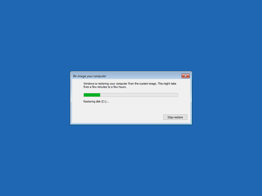 The computer will automatically reboot once the restoration process is done.