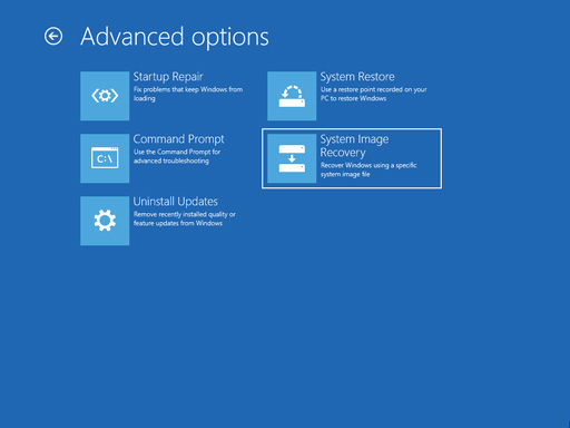 Continue with the Select a System Image Recovery option: