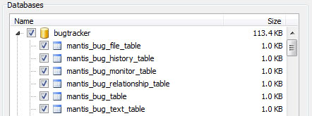Click the Update button to load the list of databases and tables. You have to fill in the server parameters before this, because KLS Backup must connect to the database server to get database list.